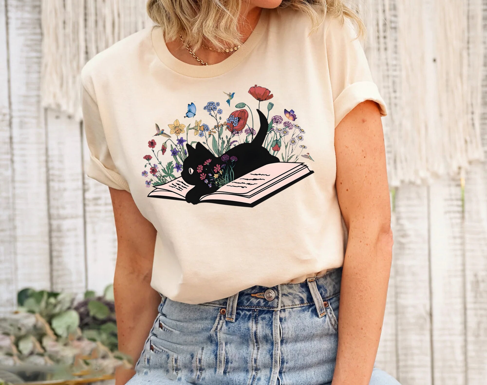 Floral Cat Book Shirt